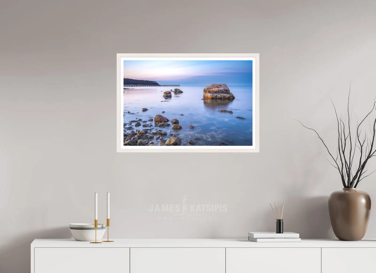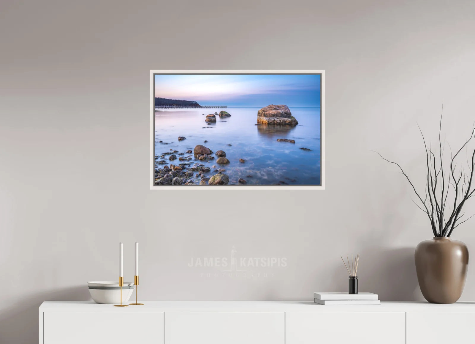 Classic box wood frames in black or white set in acrylic glass available for Fine Art Prints in select sizes.